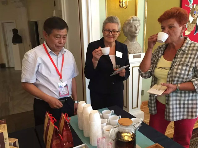 湘益茯茶作為湖南黑茶的代表以及茯磚茶國家非遺制作技藝唯一傳保護(hù)主體亮相波蘭、捷克非遺交流周,向國外友人展示“古絲綢之路上神秘之茶”的魅力以及茯茶獨(dú)有的“金花”。