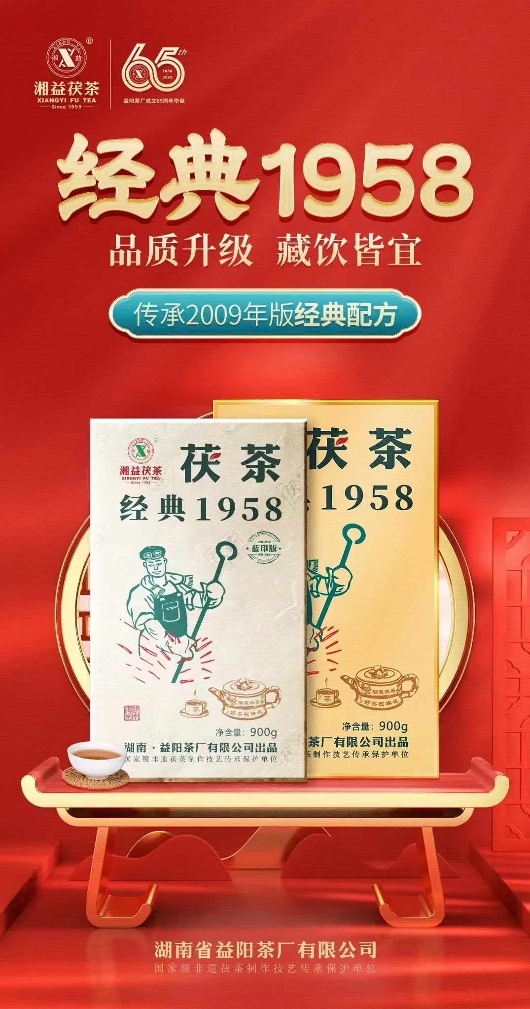 2023年,湘益積極響應市場對經(jīng)典的呼聲,傳承匠心,復刻精品,推出〖經(jīng)典1958(藍?。┸虿琛?,再現(xiàn)傳奇風味。