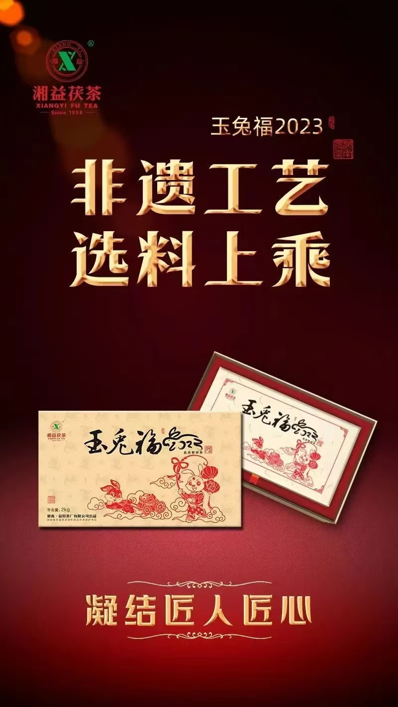 兔,明月之靈,被稱為瑞獸,是聰慧善良、家族興旺的代表,寓意長壽、平安吉祥。“玉兔福2023”以“玉兔呈祥”立意,凝聚新一年的時(shí)與運(yùn),蘊(yùn)藏著湘益茯茶對(duì)兔年的理解與美好寄望,祈愿兔年大吉、前途似錦、福運(yùn)綿長。精選雪峰山脈核心產(chǎn)區(qū)一級(jí)黑毛茶,條索緊結(jié)肥壯、嫩度高,內(nèi)含物質(zhì)豐富。由國家級(jí)非遺茯磚茶制作技藝代表性傳承人劉杏益大師結(jié)合多年制茶經(jīng)驗(yàn)、依古法精制而成。非遺技藝結(jié)合現(xiàn)代化制茶工藝,塑造了“玉兔福2023”茶香馥郁、層次豐富的特性。