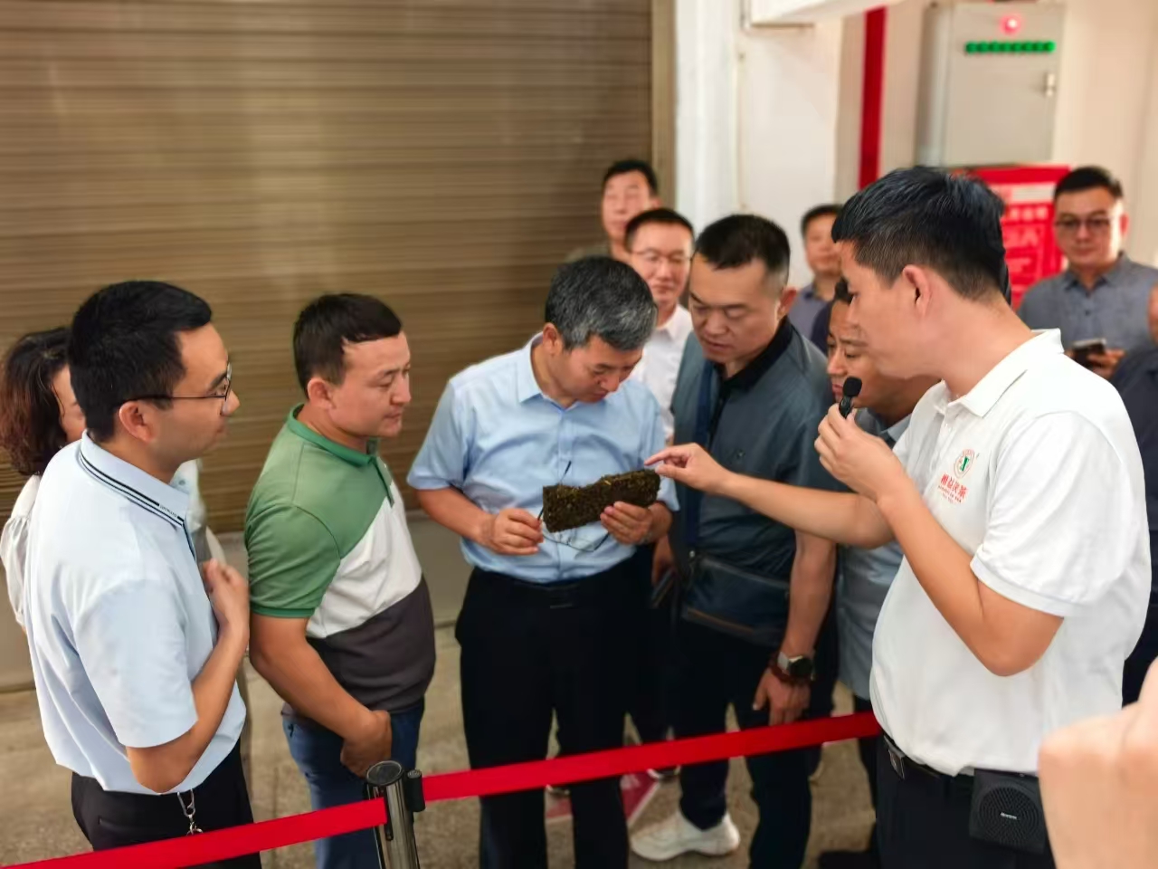 調(diào)研組實地參觀了益陽茶廠篩分車間、壓制車間及核心工藝區(qū)“金花酵庫”,并通過有關(guān)歷史文獻與實物展陳等,詳細了解了茯磚茶從原料篩選到發(fā)花干燥的工藝流程,了解了益陽茶廠自1958年建廠以來通過“一片茶守護邊疆”所展現(xiàn)的使命擔(dān)當(dāng),連續(xù)67年向新疆、青海、甘肅等地區(qū)無間斷調(diào)撥茯磚茶超60萬噸,依托萬噸級原料儲備和智能化生產(chǎn)線等,構(gòu)建起邊疆民生茶長期穩(wěn)定供應(yīng)體系。