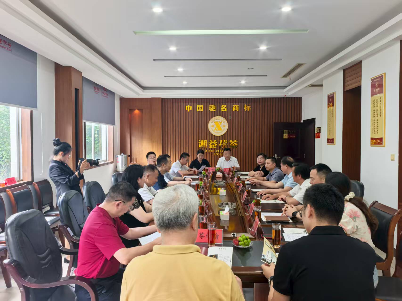 (調研組及陪同接待方還包括:海峽兩岸茶業(yè)交流協(xié)會監(jiān)事、辦公室副主任丁杰,中國茶文化推廣專項基金執(zhí)行主任、北京左圭文化發(fā)展有限公司董事長盛晟,中國茶文化推廣專項基金會董事長助理蔡俏瑜,八馬茶業(yè)國茶文化中心負責人姜雨桐等福建嘉賓;湖南省茶業(yè)協(xié)會副秘書長蔡玉蘭、副主任吳恙等陪同人員。)