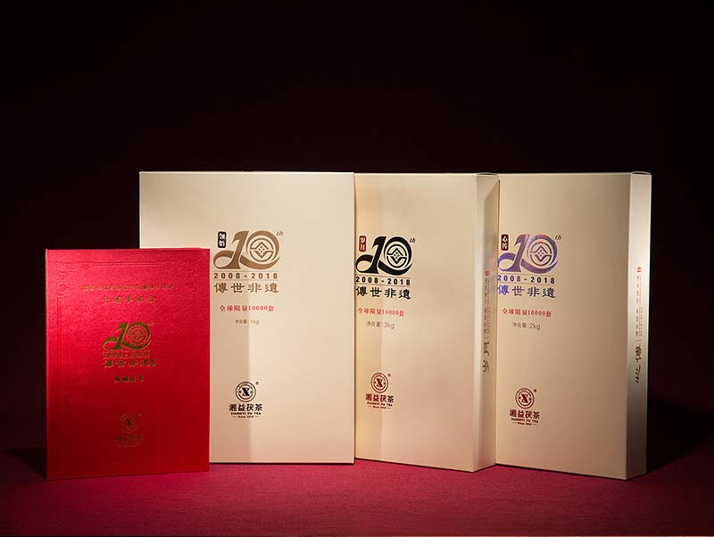 此款組合紀念茶限量收藏禮盒套裝為隆重紀念茯磚茶制作技藝列入國家非物質(zhì)文化遺產(chǎn)保護名錄十周年包含“歲月3kg”、“心傳2kg”、“領悟1kg”三塊精制手筑茯磚,每套均有劉杏益大師親筆簽名,并配備有獨立收藏編號的典藏證書,共10000套,收藏品飲價值皆宜。