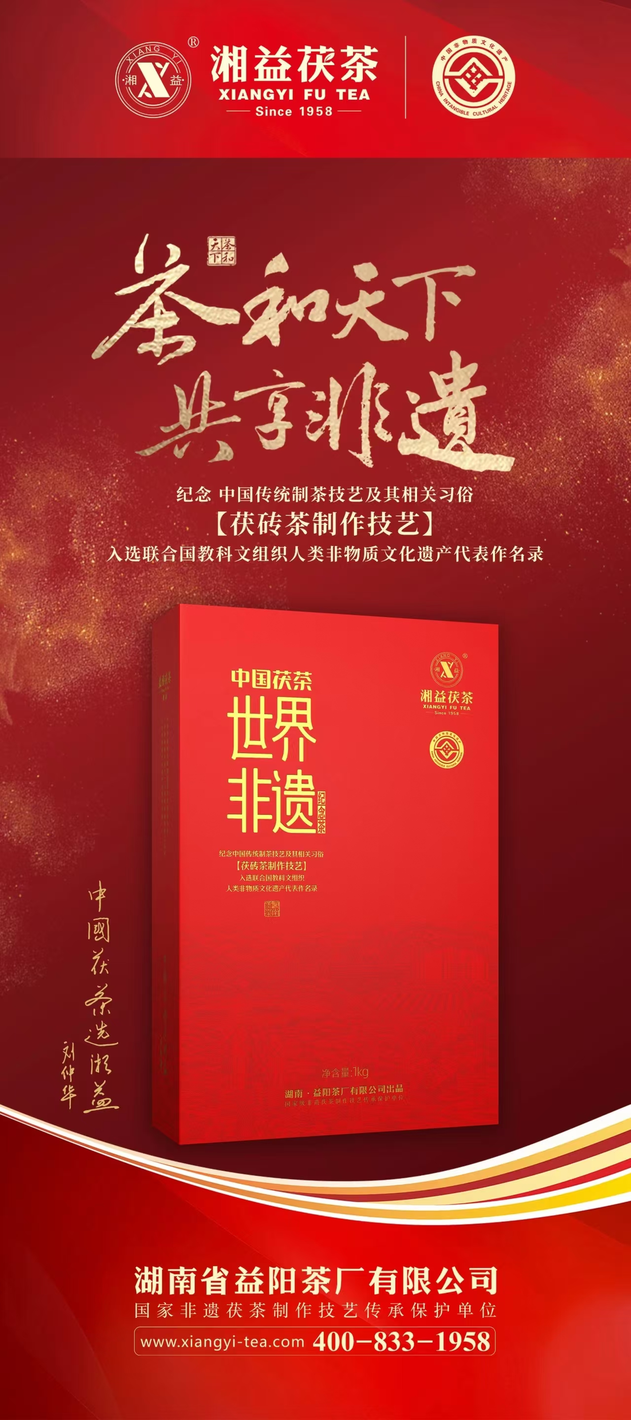 2023年11月29日,“中國(guó)傳統(tǒng)制茶技藝及其相關(guān)習(xí)俗”被正式列入聯(lián)合國(guó)教科文組織人類(lèi)非物質(zhì)文化遺產(chǎn)代表作名錄。茯磚茶制作技藝也被列入其中!該技藝的傳承保護(hù)單位為益陽(yáng)茶廠(chǎng)有限公司(湘益茯茶)。